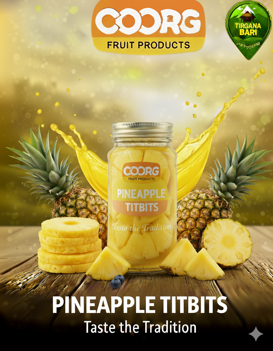 Our Pineapple Titbits offer a ready-to-use solution for any recipe requiring juicy, bite-sized pineapple chunks. Made from ripe, golden pineapples and cut into even pieces, these tidbits are preserved in syrup to maintain their tropical flavor and freshness.